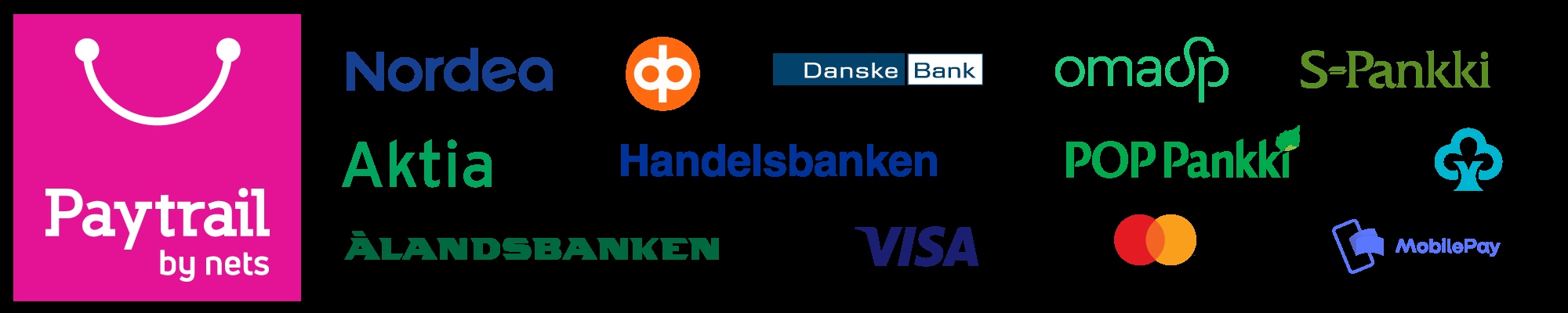 Maksunvälityspalvelun toteuttajana ja maksupalveluntarjoajana toimii Paytrail Oyj (2122839-7) yhteistyössä suomalaisten pankkien ja luottolaitosten kanssa. Paytrail Oyj näkyy maksun saajana tiliotteella tai korttilaskulla ja välittää maksun kauppiaalle. Paytrail Oyj:llä on maksulaitoksen toimilupa. Reklamaatiotapauksissa pyydämme ottamaan ensisijaisesti yhteyttä tuotteen toimittajaan.
